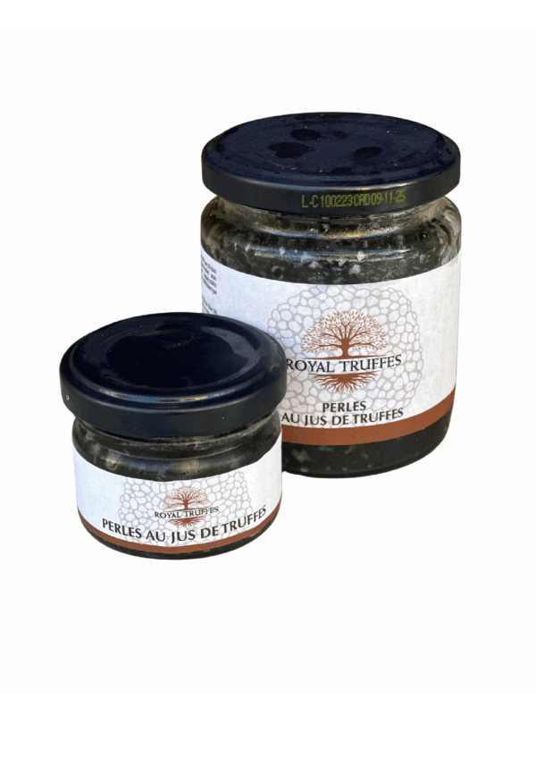 Succombez à l’élégance des Perles au jus de truffes signées Royal Truffe. Ces perles délicates, imprégnées du parfum intense de la truffe noire, ajoutent une touche raffinée à vos plats gourmets, entrées ou amuse-bouches. Laissez-vous séduire par une explosion de saveurs uniques et luxueuses.